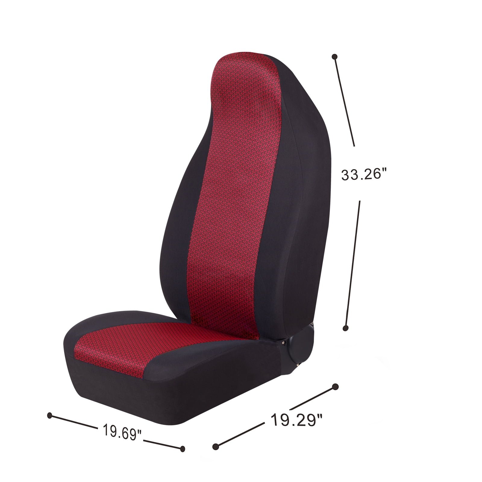Auto Drive 1pc Atlanta Red Front Seat Cover Specifications: • Material: high-quality polyester• Colors: red Package Content: • 1 x front high back bucket seat covers; Features: • DESIGN & MATERIAL; Made from phigh-quality polyester. • OPTIMUM PROTECTION – Provides an extra layer of protection to the finish of your vehicle’s seat • Helps to prevent stains, rips, tears and other damage from everyday messes and mishaps