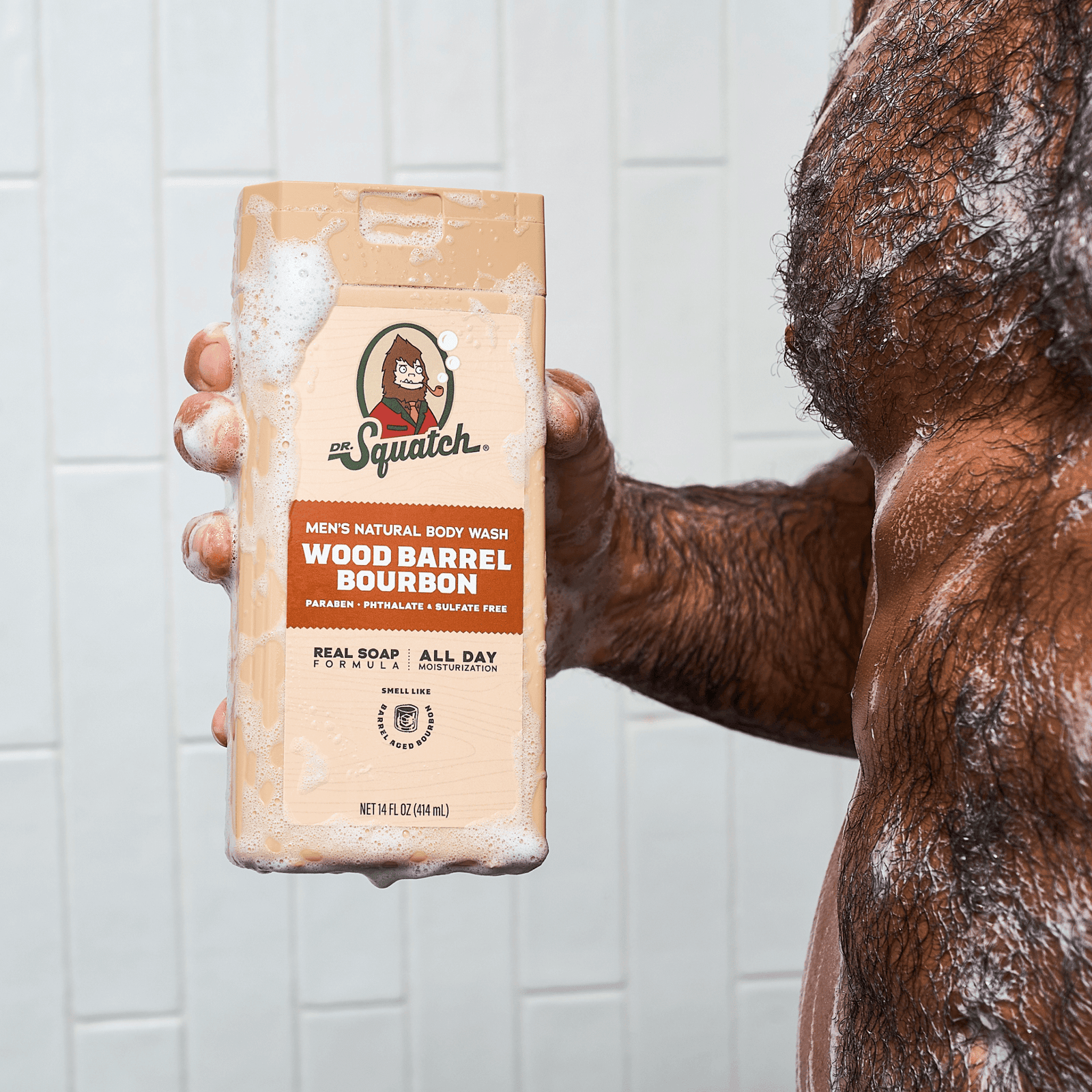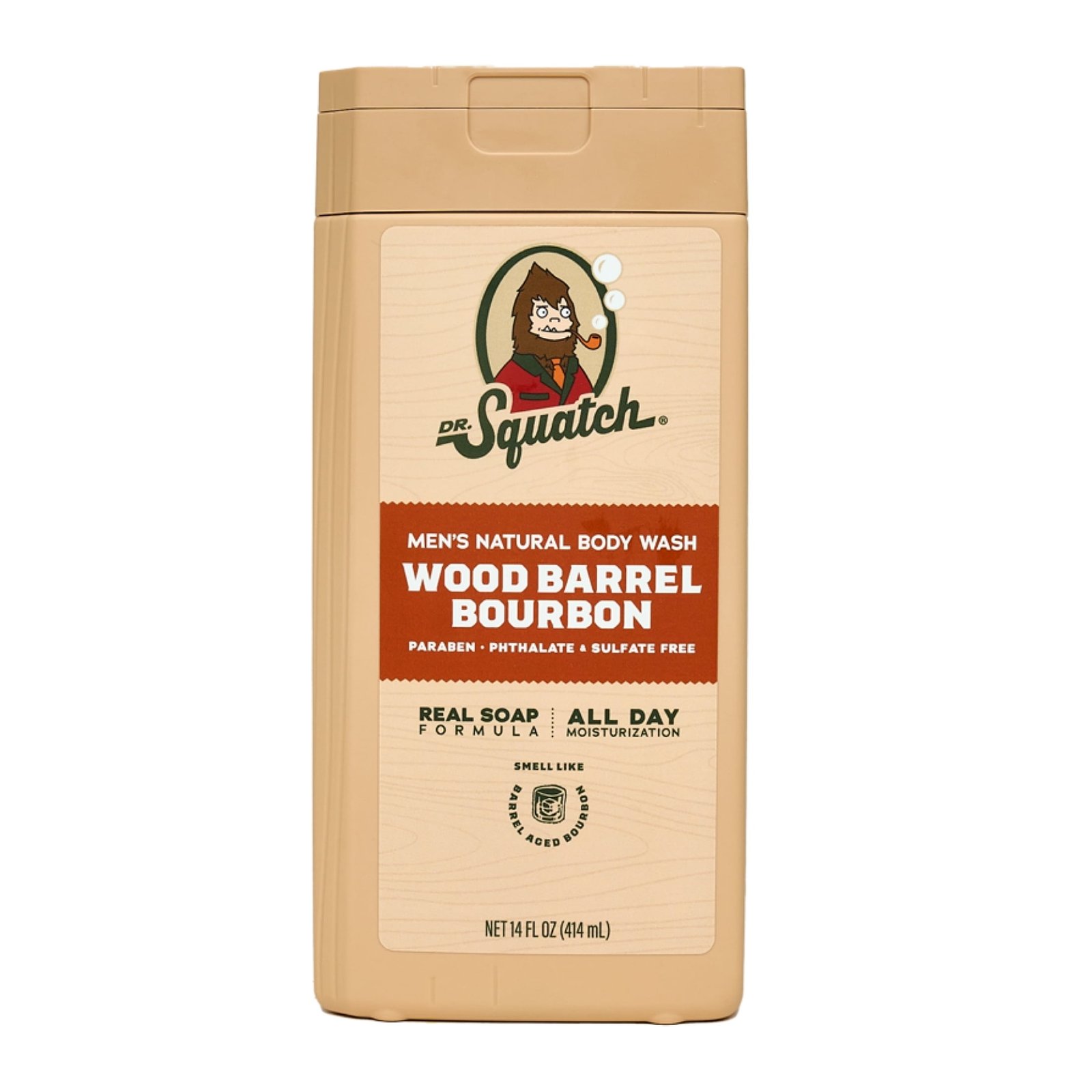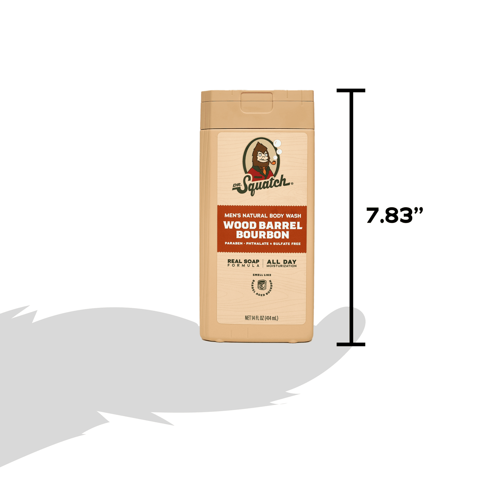 Looking for a body wash that combines natural care and bold scents? Indulge in the rich, rugged aroma of Wood Barrel Bourbon, a body wash crafted for a deep and refreshing clean. Infused with the enticing blend of bourbon, oak, and spice, this men’s body wash brings sophistication to your daily routine. It’s made with natural ingredients like glycerin and coconut oil for a satisfying lather and a thorough cleanse. This body wash uses a real soap formula that cleans deeply without heavy residue. The 14 fl oz size offers plenty for everyday use, delivering a consistent, clean feel from shower to shower. Enjoy the old-fashioned fragrance of barrel-aged bourbon with Dr. Squatch Wood Barrel Bourbon Natural Body Wash for Men. The legendary scent combines the smoky warmth of bourbon with hints of oak and spice. Enhanced with Scent-Lock™ Technology, it carries the rich aroma beyond the shower for a memorable, masculine finish. Formulated with quality ingredients and a function-first approach, this natural body wash focuses on a clean rinse and a straightforward routine—without parabens, sulfates, or silicones. Make Wood Barrel Bourbon part of your everyday routine and enjoy that clean, barrel-fresh feel after every shower.