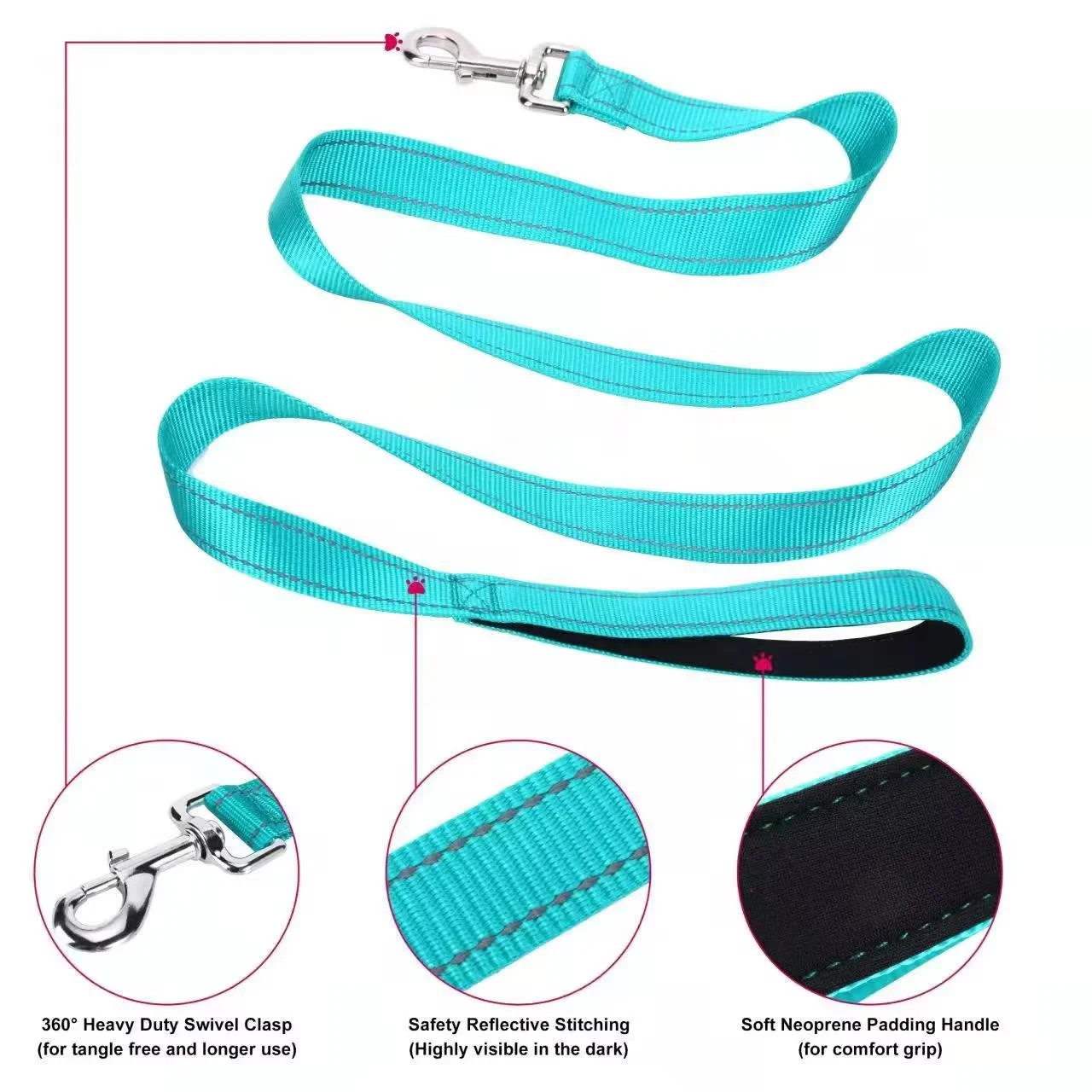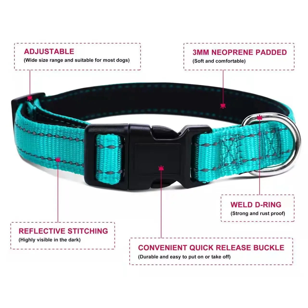 Jumpress Soft Padded Reflective Dog Collar and Leash set,Safety and Durable for Small Medium Large Dogs Daily Walking Material:Double Layer Nylon with Durable Alloy Hardware Classic Colors: Black,Teal,Hot Pink