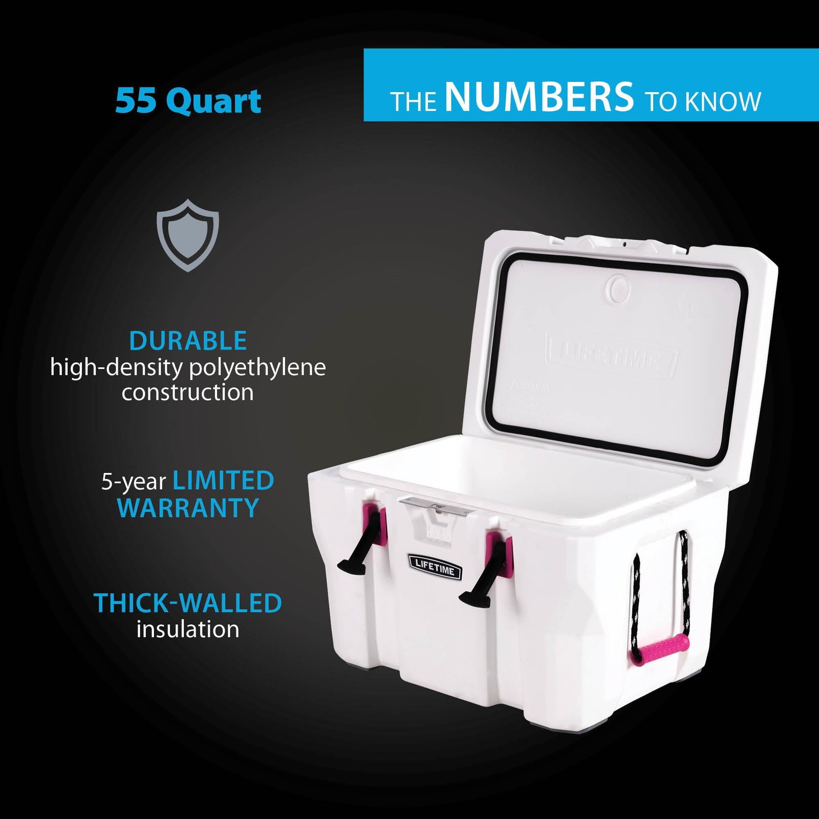 • Lifetime 55 Quart High Performance Polyethylene Cooler, White/Pink