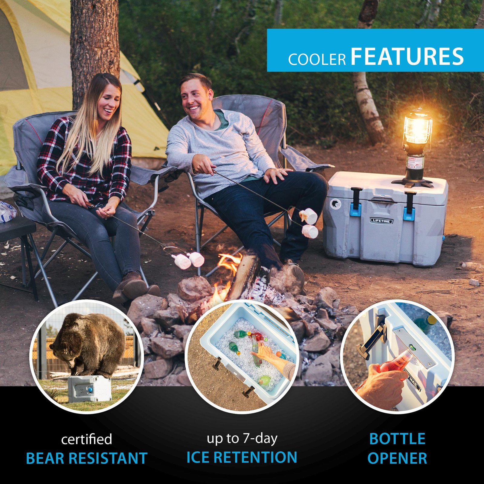 The Lifetime High Performance Cooler is perfect for anywhere you want to go. Its performance exceeds most premium priced coolers both in strength and in the all-important ice retention. With heavy-duty Polyethylene construction, an insulated lid and body that provides strength, and protection, the Lifetime cooler is light enough for everyday use, solid enough to keep your ice, and durable enough to go anywhere you go. With a 5-year warranty, up to 7 days ice retention, and room for 60 cans with ice, the Lifetime cooler will more than stack up with the competition. 55 qt. hard sided cooler.