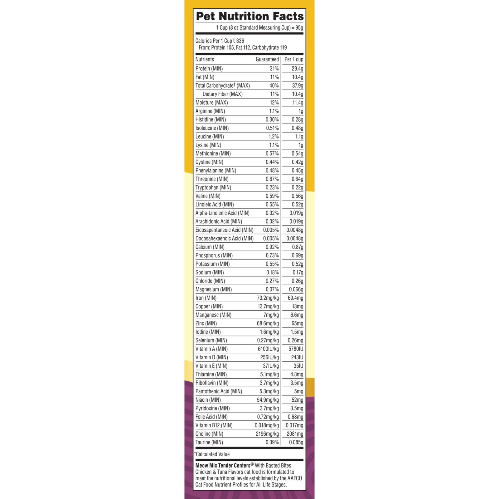 Get your cat excited for mealtime with an irresistible taste and texture mashup. Meow Mix Tender Centers Dry Cat Food with Basted Bites features two texture kibble with a meaty center surrounded by a crunchy outer layer. Along with the exciting texture combo are the delicious flavors of chicken and tuna, and Basted Bites pieces that take the tastiness to a whole new level (versus the already-delicious Tender Centers Salmon and White Meat Chicken flavor). Of course, this recipe also provides the everyday nutrition your cat needs. That includes 40 essential vitamins, minerals, amino acids and fatty acids, with calcium and vitamin D to help support healthy teeth and bones. With so much goodness packed into every bite, it’s no wonder why Meow Mix cat food is The Only One Cats Ask for by Name.