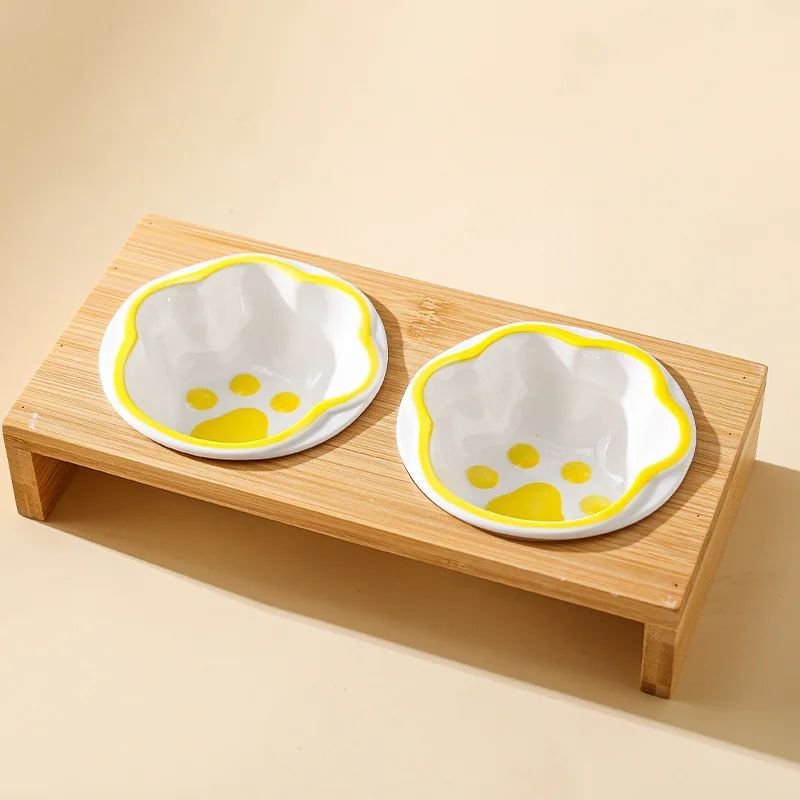 Pet Supplies Bamboo Frame Hand Colored Ceramic Protection For Cervical Vertebrae Eating Drinking Samll Cat And Dog Bowls