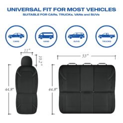 - Universal Fit: Designed to fit most standard seats in cars, SUVs, and trucks, these seat covers are easy to install and adjust for a secure fit.