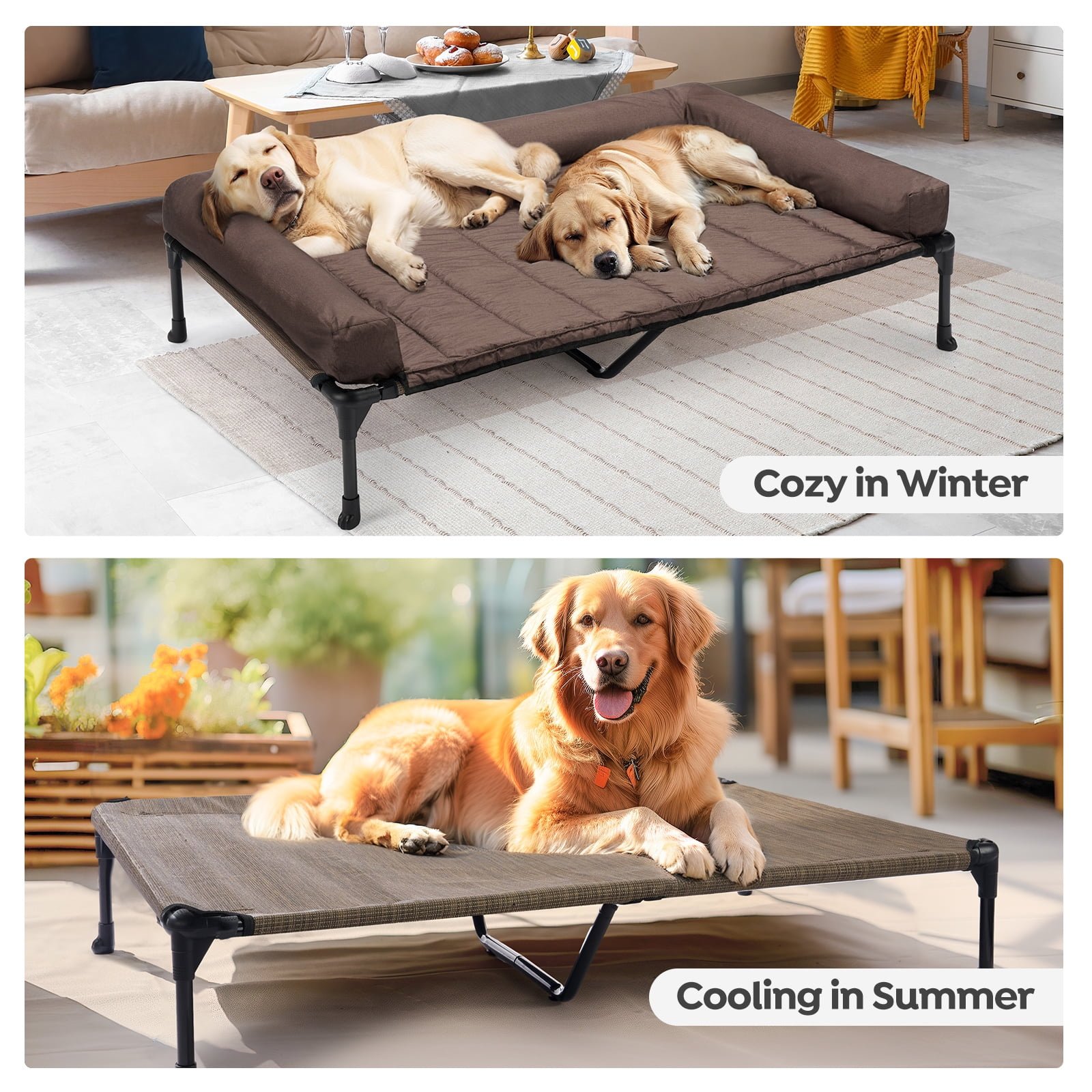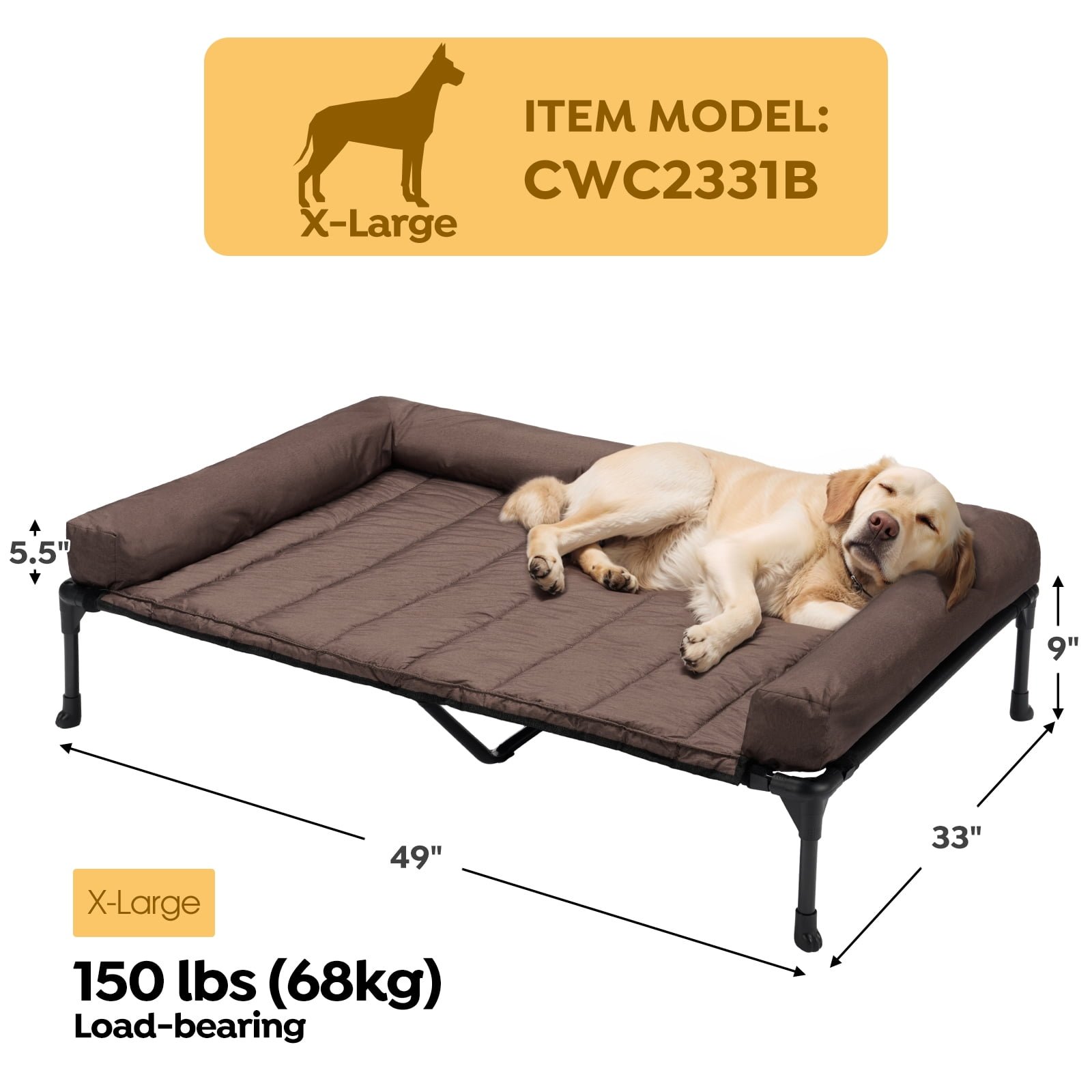 - Extra Large Raised Pet Cot: The dog bed frame measures 49″x33″x9″ (125x83x22.5 cm), supports up to 150 lbs(68kg). Ideal for a normal adult German Shepherd, Golden Retriever, Rottweilers, Boxers, Huskies, Great Danes etc.