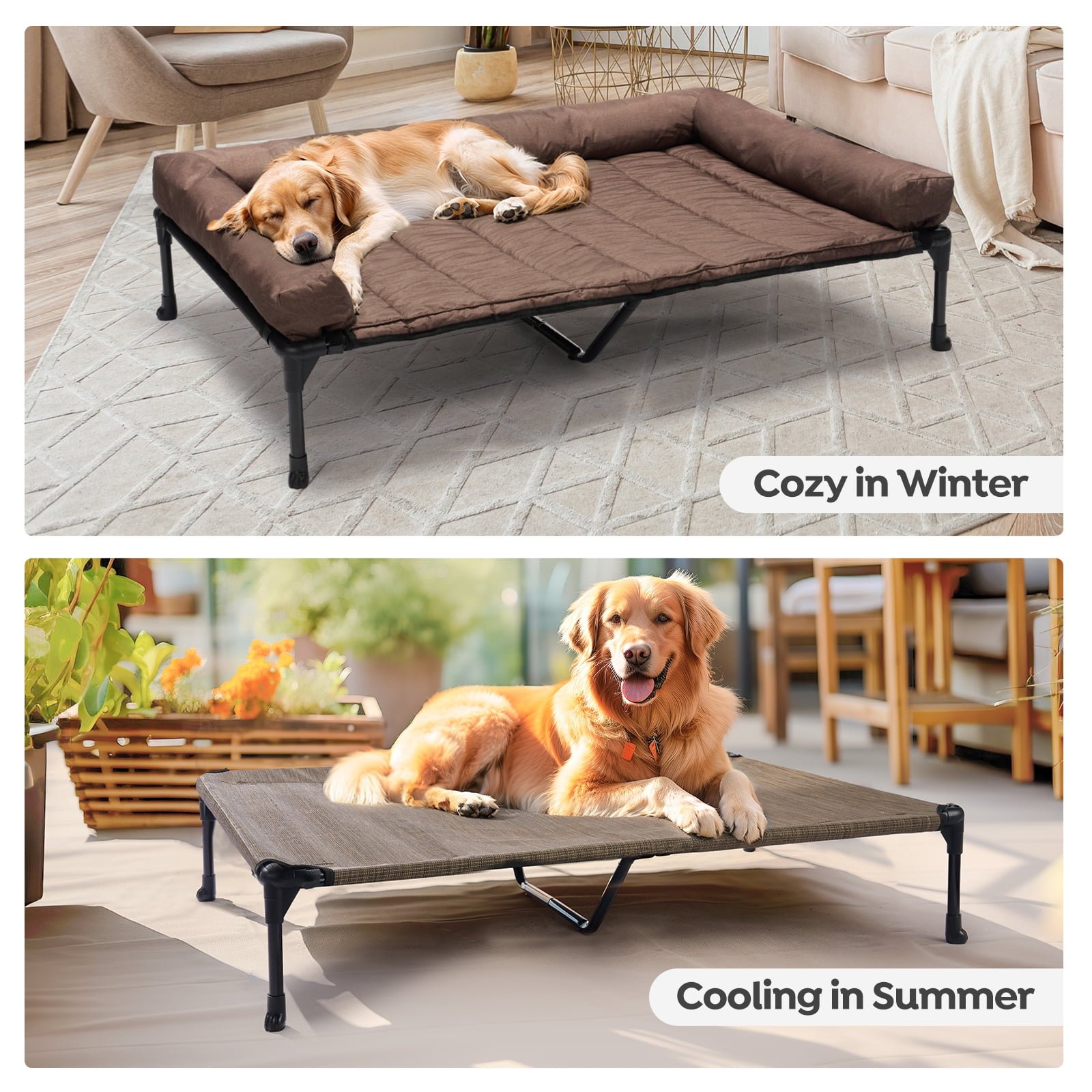 After the removable bolster mat detached, the raised dog cot promotes air flow on all sides, including underneath. This helps to keep your dog cool during warmer months, and provides a dry sleeping area.
