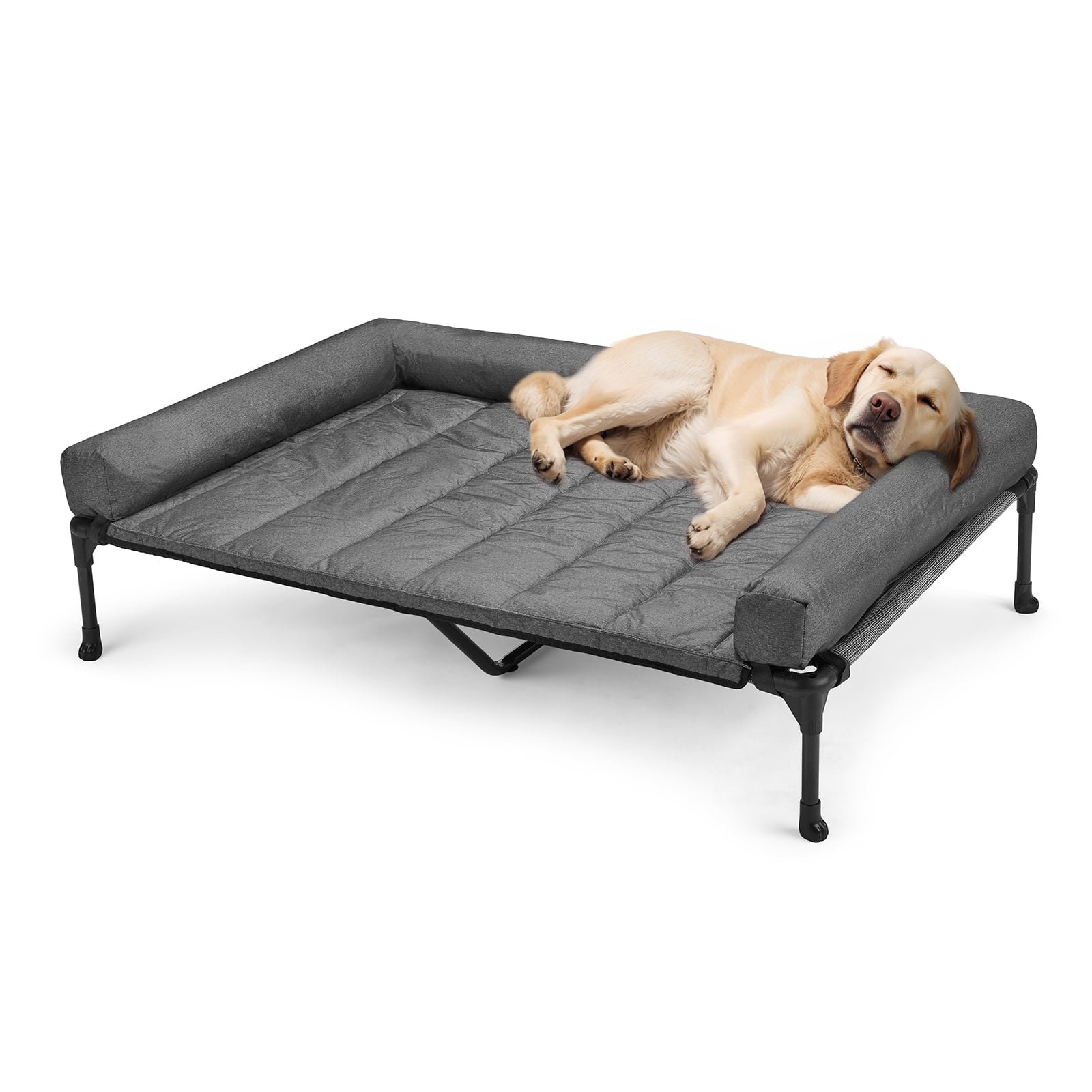 Veehoo Cooling Elevated Dog Bed + Waterproof Removable Pillow-Top Mat, Bolster Dog Cot Bed, Raised Pet Cot with Breathable Mesh, No-Slip Feet, Dog Sofa Bed for Indoor & Outdoor, XLarge, Black Silver CWC2331B